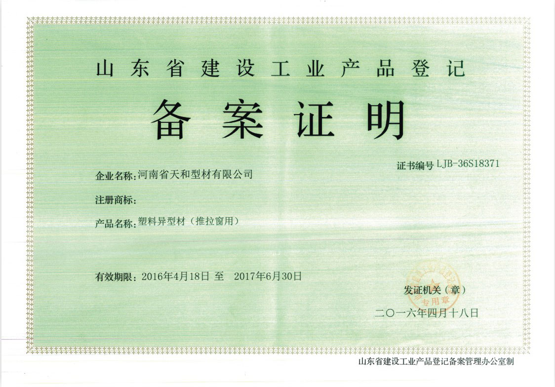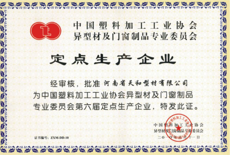 河南省天和型材有限公司是一家以生產(chǎn)PVC-U塑鋼門窗異型材為主的大型企業(yè),“中國塑鋼異型材定點生產(chǎn)企業(yè)”,總投資8000萬元,占地面積60000平方米,公司總資產(chǎn)1.5億元。公司擁有現(xiàn)代化大型生產(chǎn)車間和先進的生產(chǎn)設(shè)備與檢測設(shè)備,公司擁有員工300余名,生產(chǎn)工程師16名和中級生產(chǎn)技工60余名生產(chǎn)設(shè)備和生產(chǎn)團隊鑄造了公司的產(chǎn)品質(zhì)量。